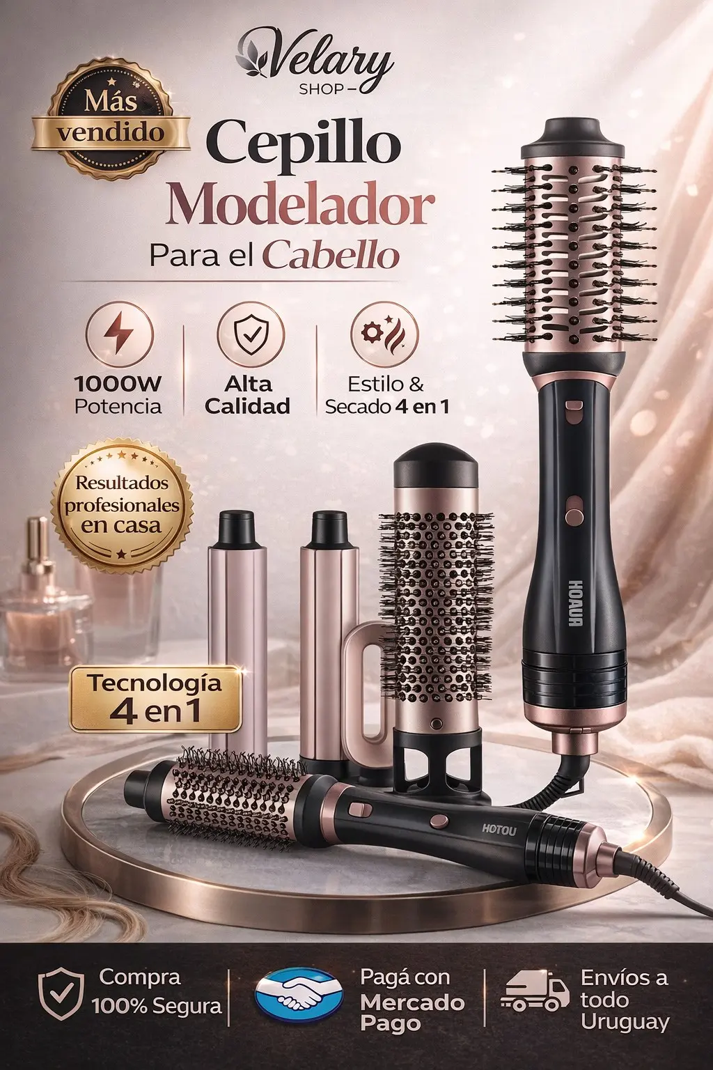 Con el Cepillo Modelador 4 en 1 de Velary Shop, lograr un cabello perfecto ahora es rápido, fácil y sin esfuerzo.